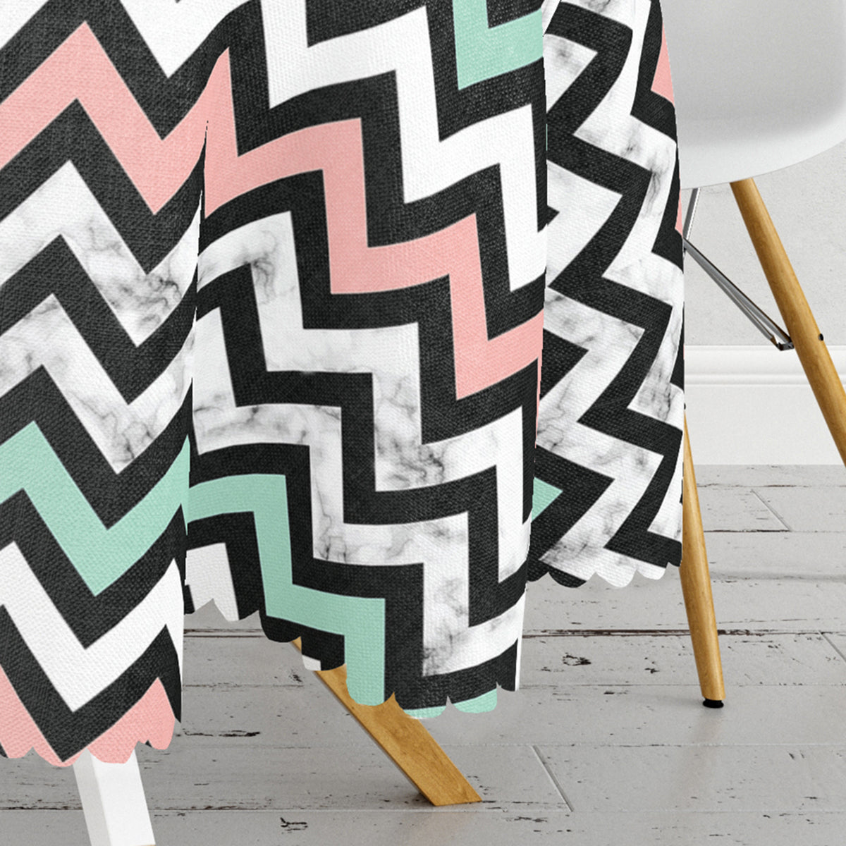 Pembe Mavi Geometrik Mermer Zeminli Dijital Baskılı Leke Tutmaz Yuvarlak Masa Örtüsü
