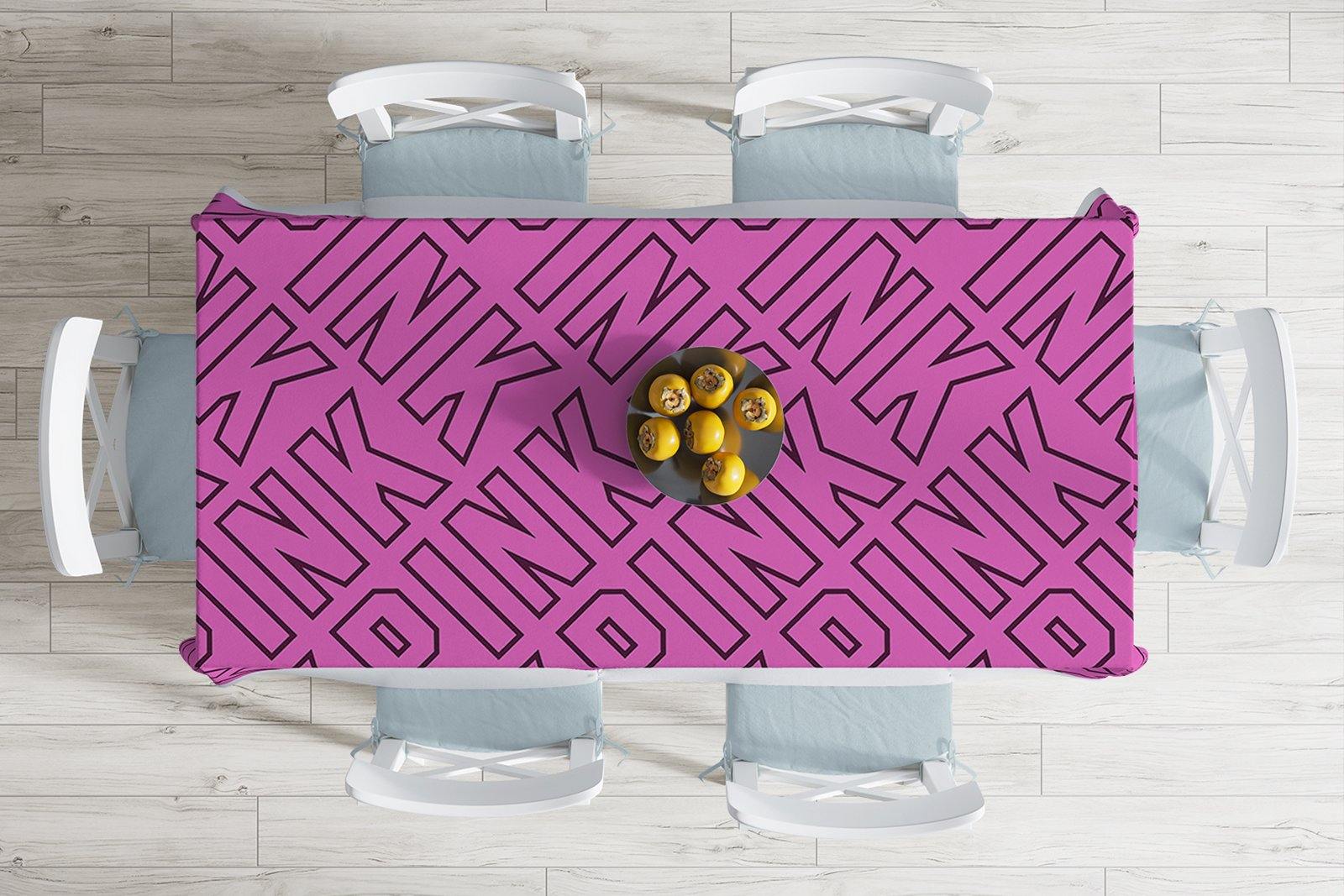 Pembe Zeminli Pink Yazılı Dekoratif Leke Tutmaz Masa Örtüsü