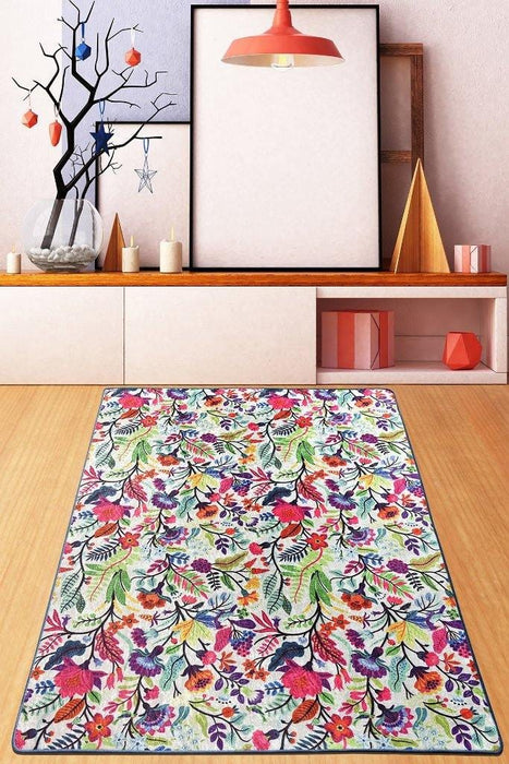 Pictura Ekru Dijital Baskılı Halı, Kaymaz Taban, Yıkanabilir