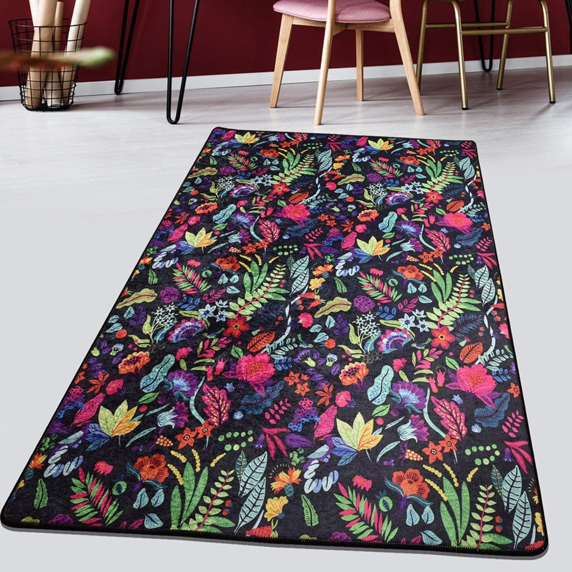 Pictura Siyah Dijital Baskılı Halı, Kaymaz Taban, Yıkanabilir