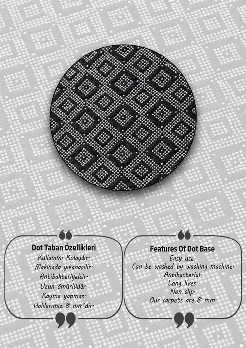 Pictura Siyah Oval 2li Set Dijital Baskılı Banyo Paspas ve Halısı, Kaymaz Taban, Yıkanabilir
