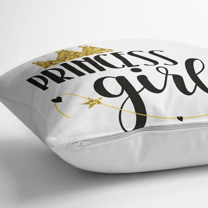 Prıncess Gırl Yazılı Dijital Baskılı Dekoratif Yastık Kırlent Kılıfı 43x43cm