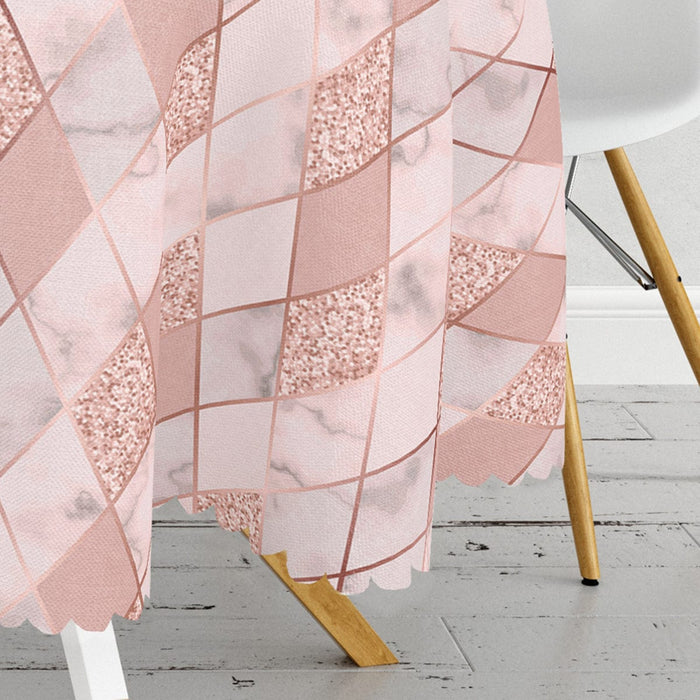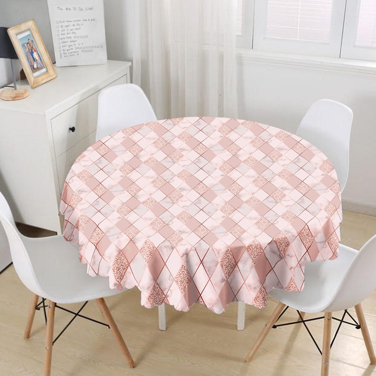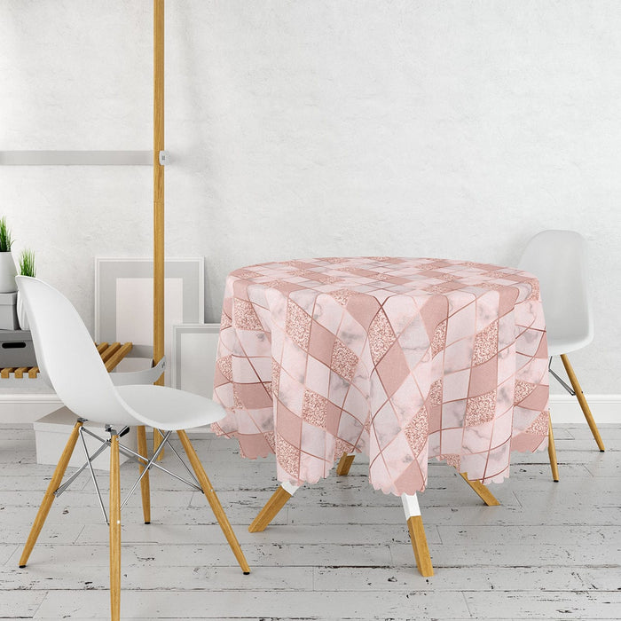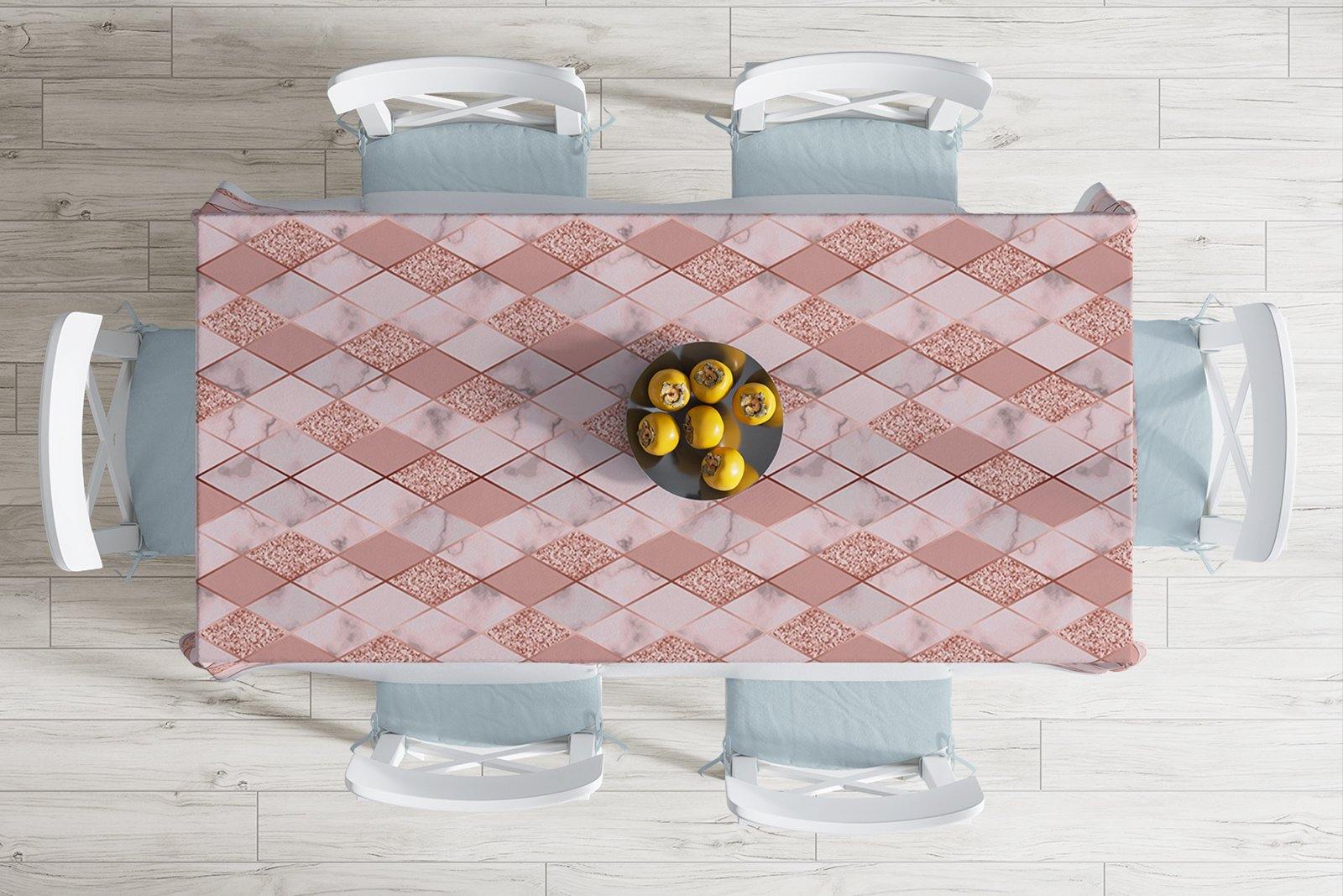 Pudra Renkli Üçgen Zeminli Modern Leke Tutmaz Masa Örtüsü