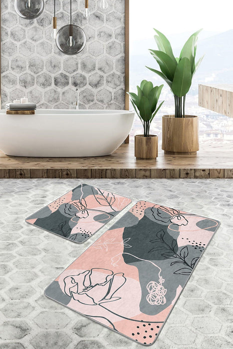Pudra Zemin Bohem Motifli 2li Banyo Paspas ve Halısı Takımı Kaymaz Taban Yıkanabilir