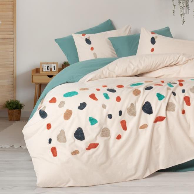 Punch Nakışlı Ranforce Çift Kişilik Nevresim Takımı Gaja Mint 4 Adet Yastık Kılıfı %100 Pamuk 4 Adet Yastık Kılıfı