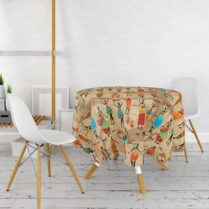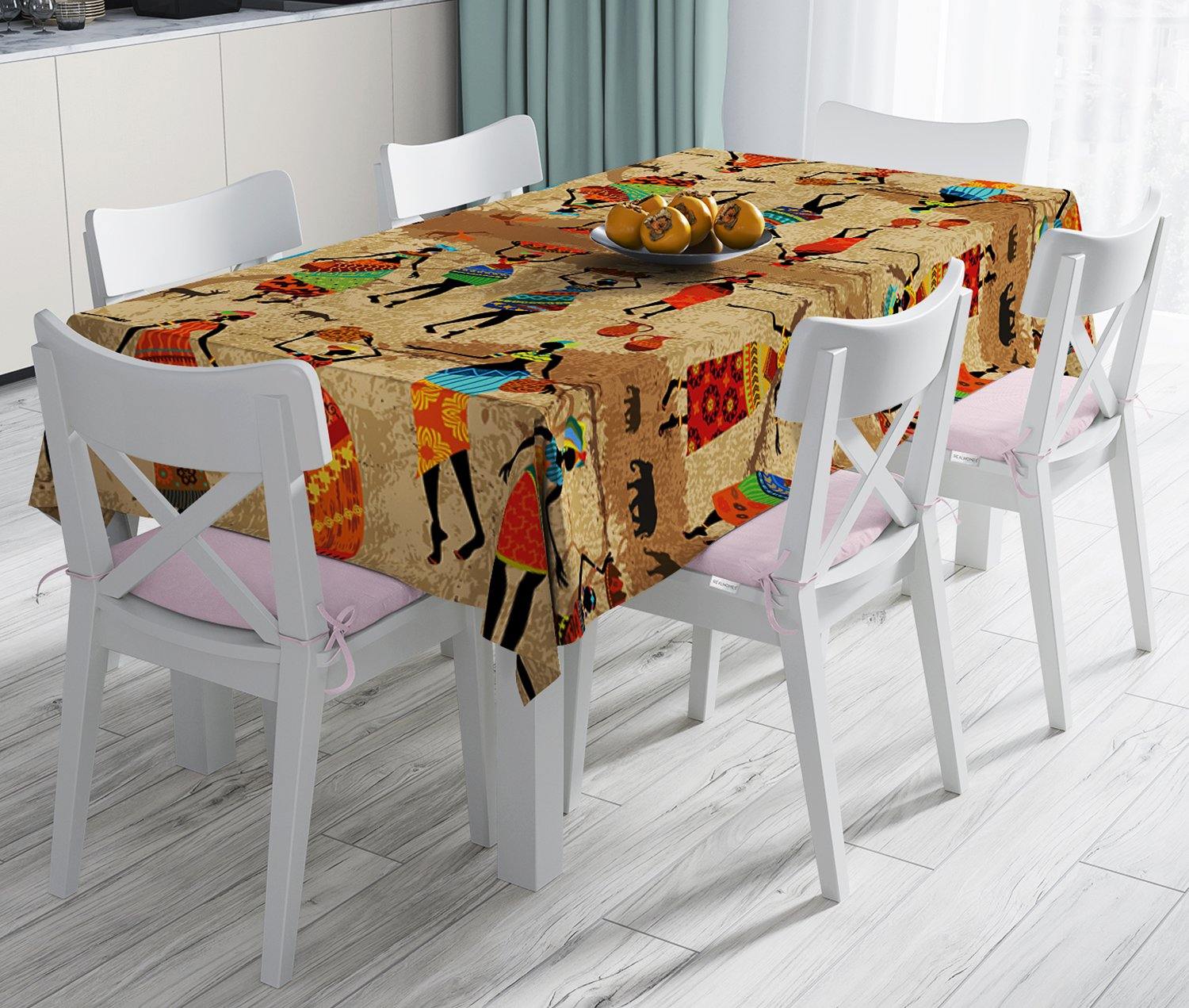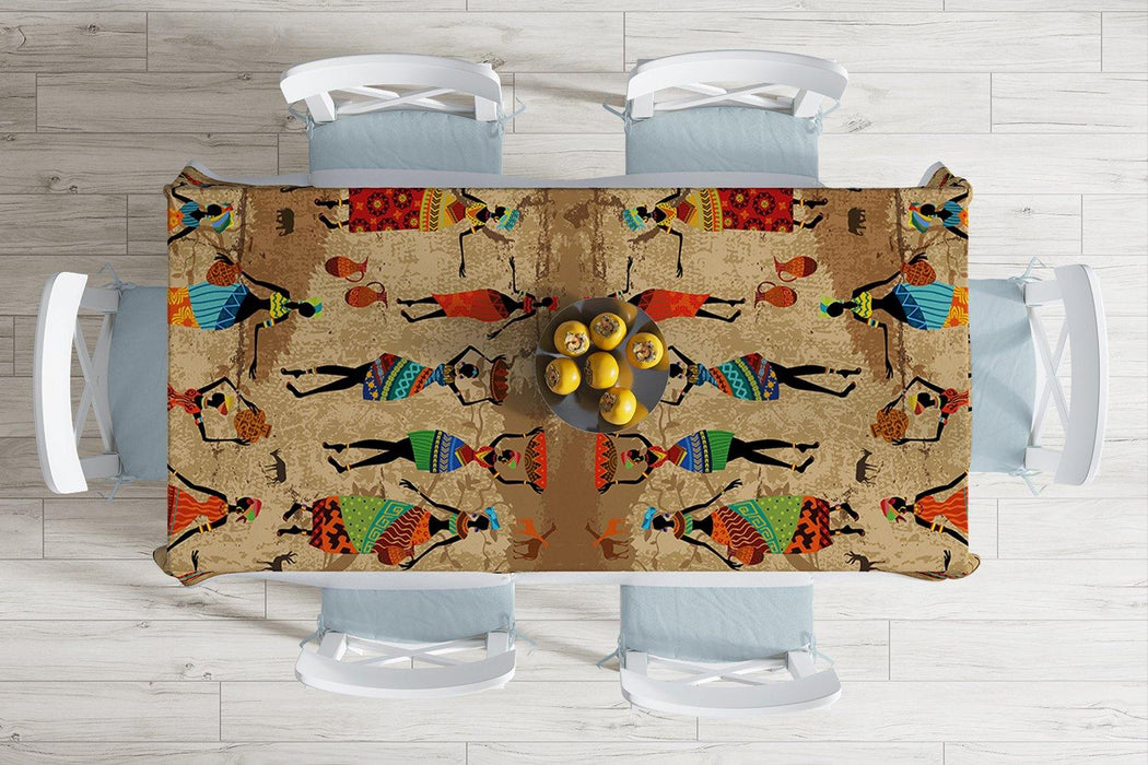 Afrika Etnik Desenli Dijital Baskılı Modern Leke Tutmaz Masa Örtüsü