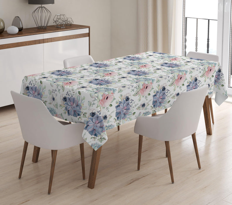 Mavi Pembe Çiçekli Dijital Baskılı Masa Örtüsü