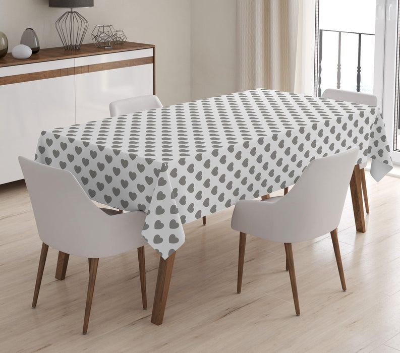 Beyaz Gri Kalpli Dijital Baskılı Masa Örtüsü