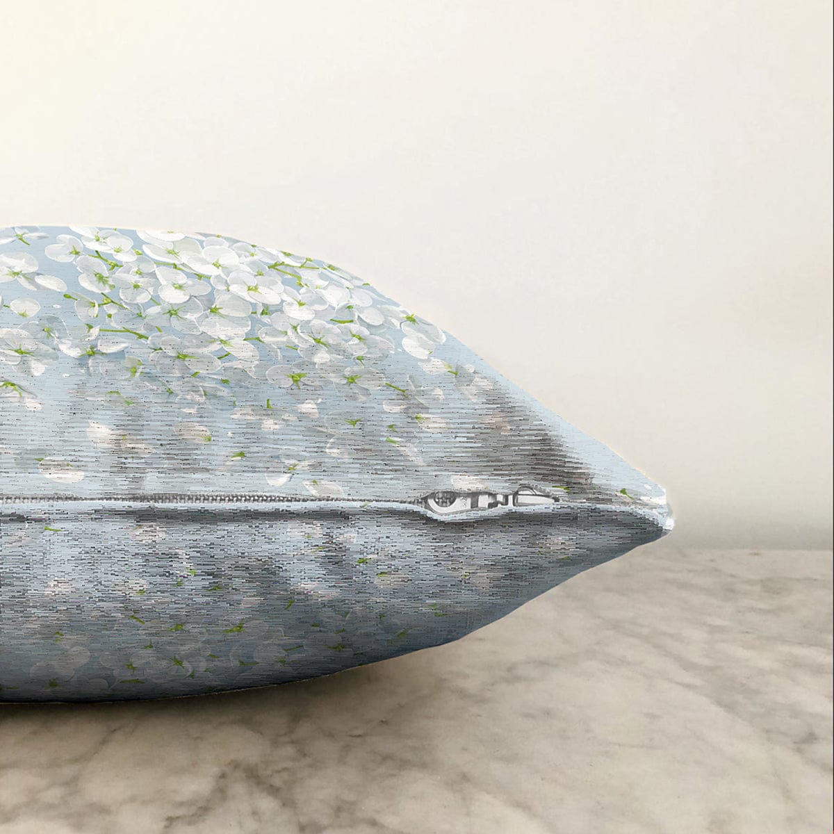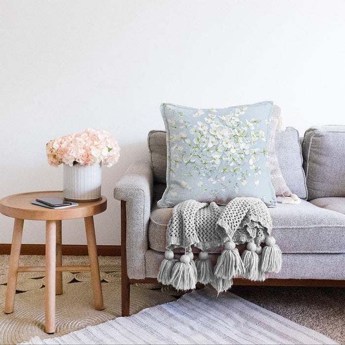 Rengarenk Zeminli Beyaz Ortanca Çiçek Desenli Dijital Baskılı Modern Raşel Kadife Kırlent Kılıfı