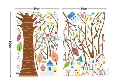 Renki Ağaç ve Kasaba Desenli Duvar Çıkartması Süsü (sticker)