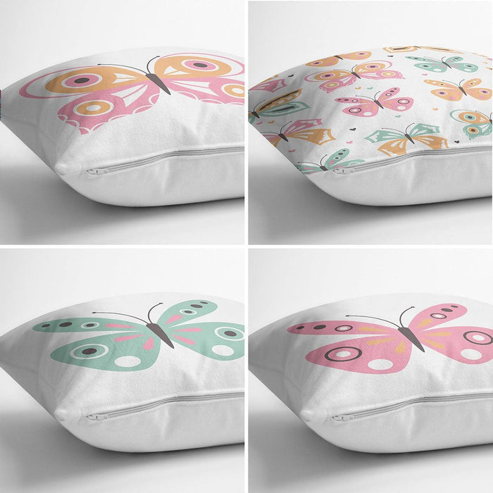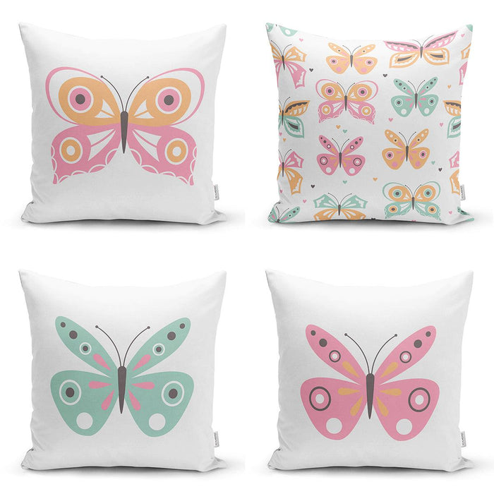 Renkli Kelebekler Özel Tasarım Dijital Baskılı Modern 4lü Kırlent Kılıfı Seti