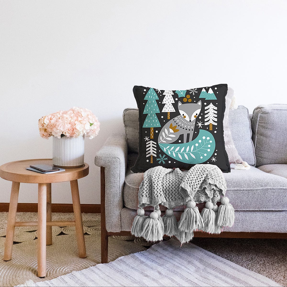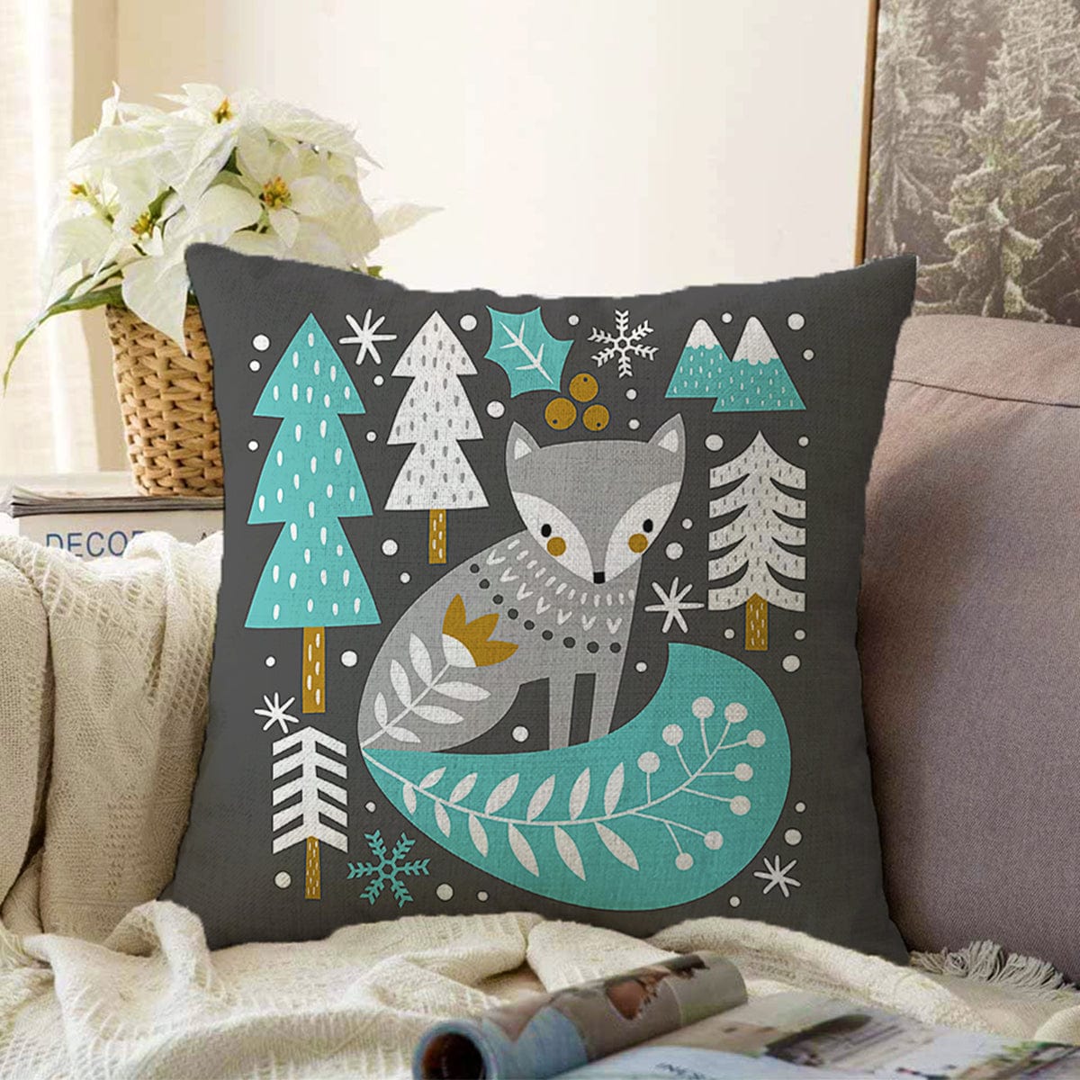 Renkli Zeminde Onedraw Çizimli Yılbaşı Temalı Dijital Baskılı Modern Raşel Kadife Yastık Kılıfı