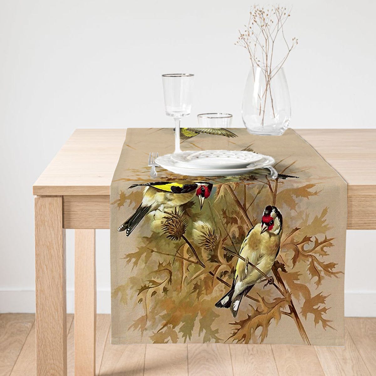 Saka Kuşlu Dijital Baskılı Dekoratif Süet Runner