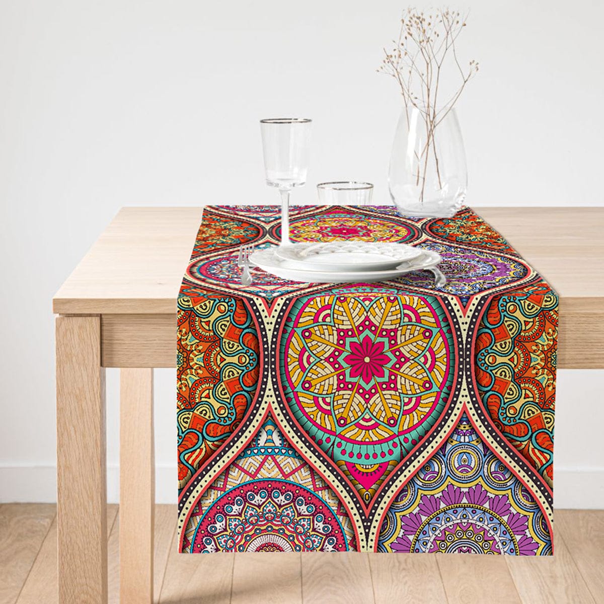 Sarmal Daire Desenli Çini Motifli Dijital Baskılı Özel Tasarım Süet Runner