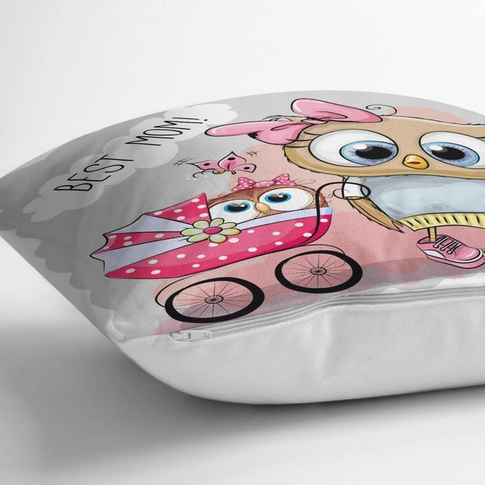 Sevimli Kuşlar Dijital Baskılı Dekoratif Yastık Kırlent Kılıfı 43x43cm