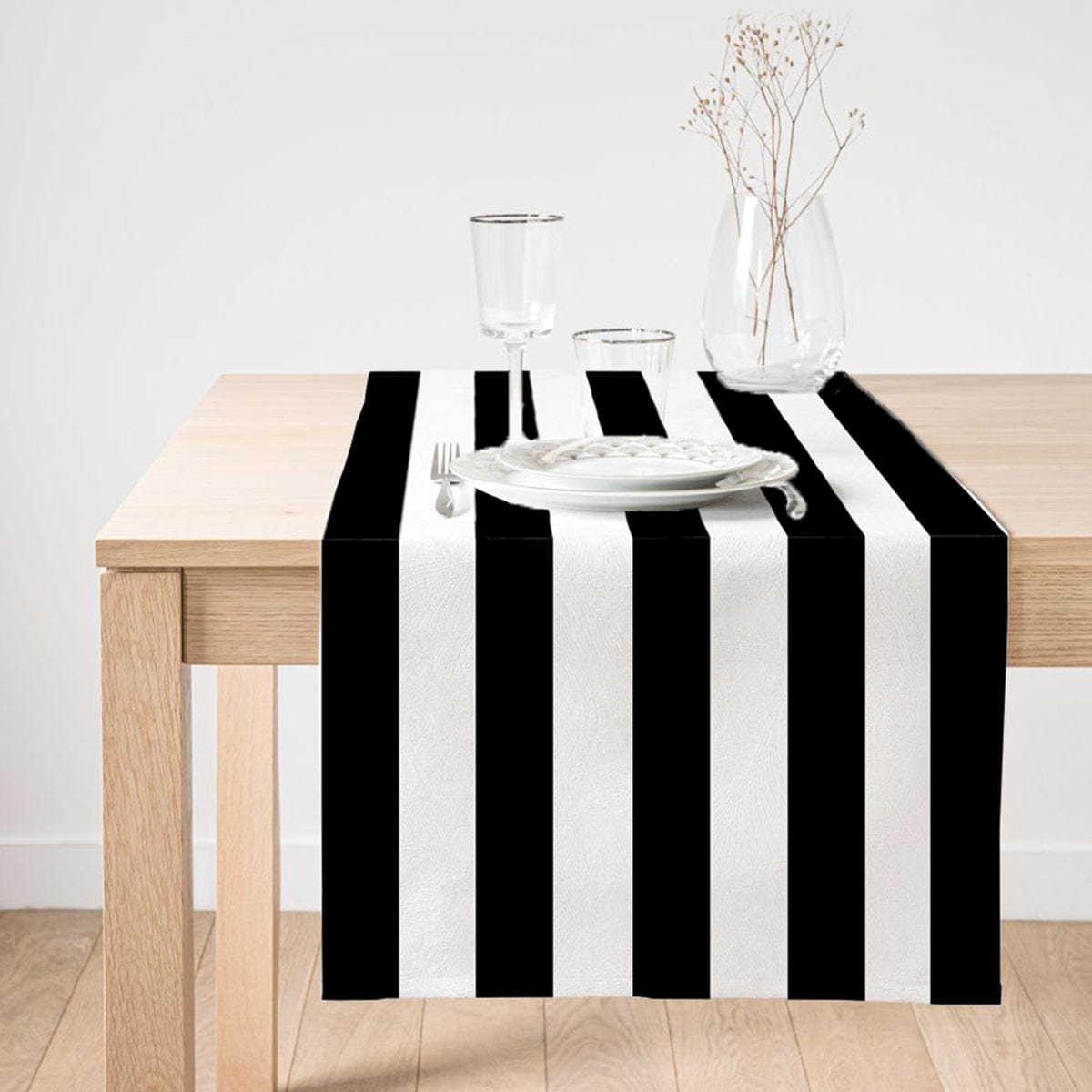 Siyah Beyaz Çizgili Dekoratif Özel Tasarım Süet Runner