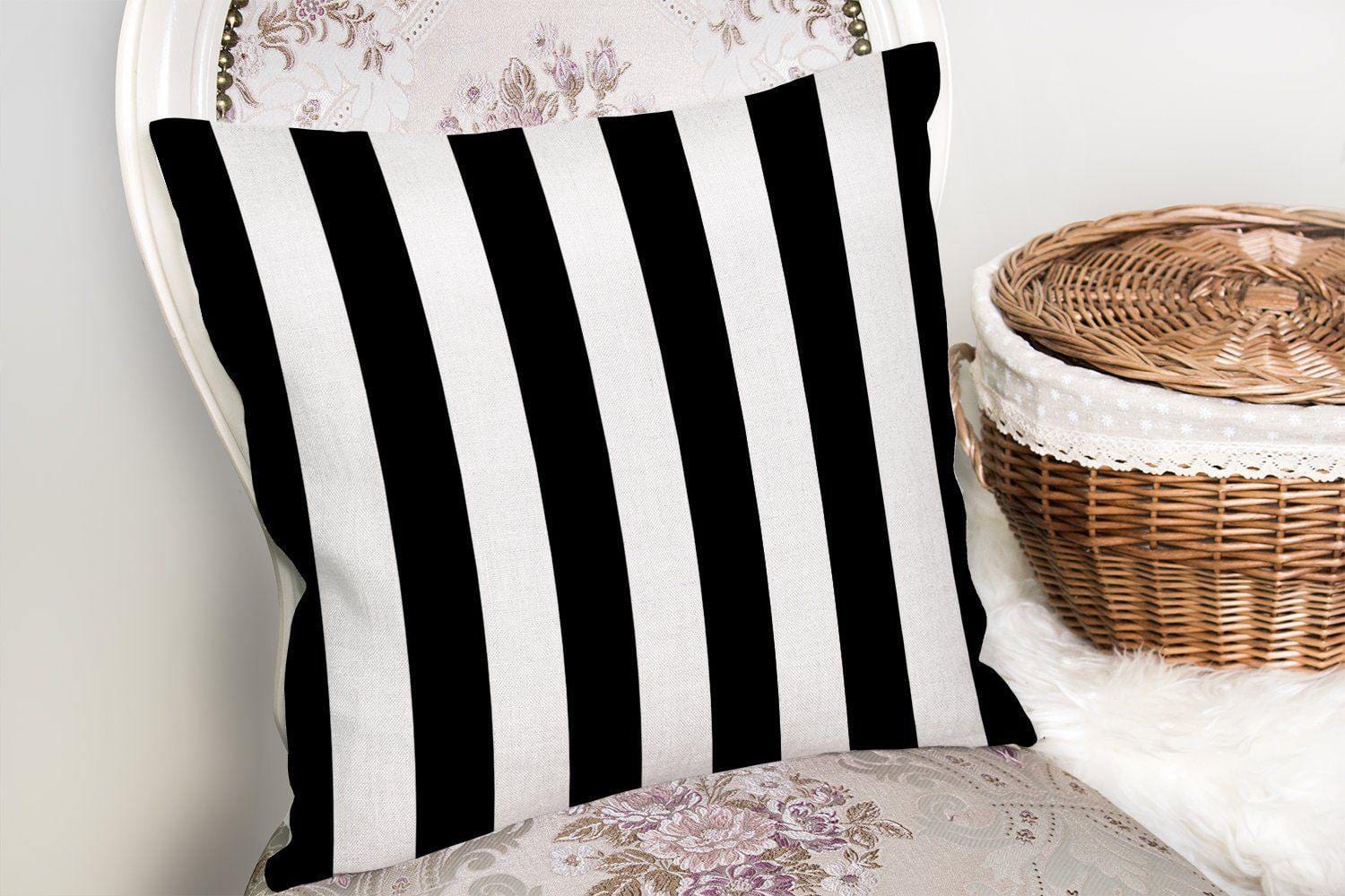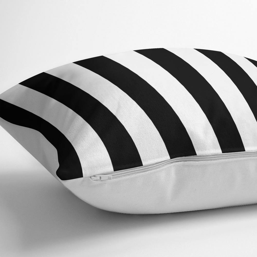 Siyah Beyaz Çizgili Dekoratif Yastık Kırlent Kılıfı 43x43cm