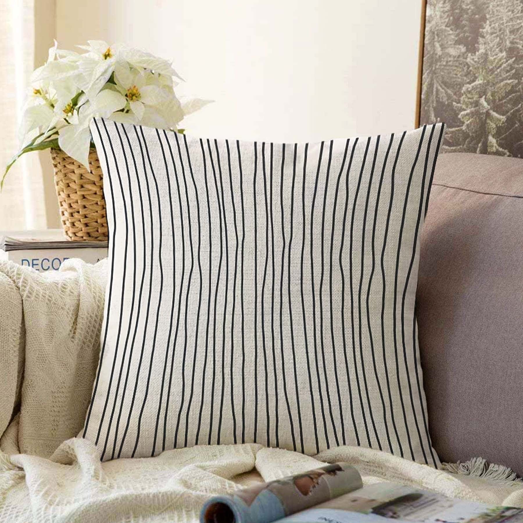 Siyah Beyaz Dalgalı Çizgi Motifli Dekoratif Raşel Kadife Yastık Kırlent Kılıfı