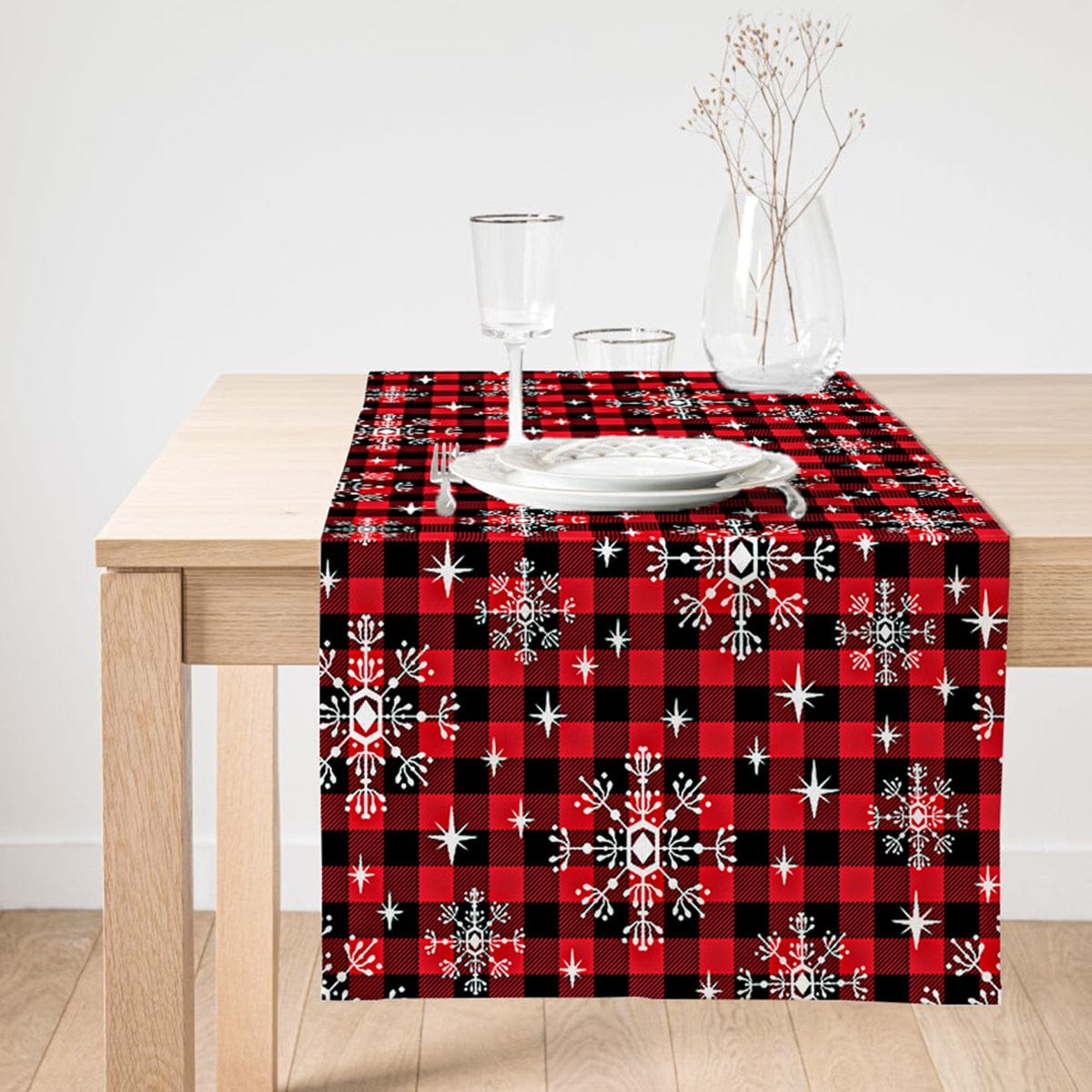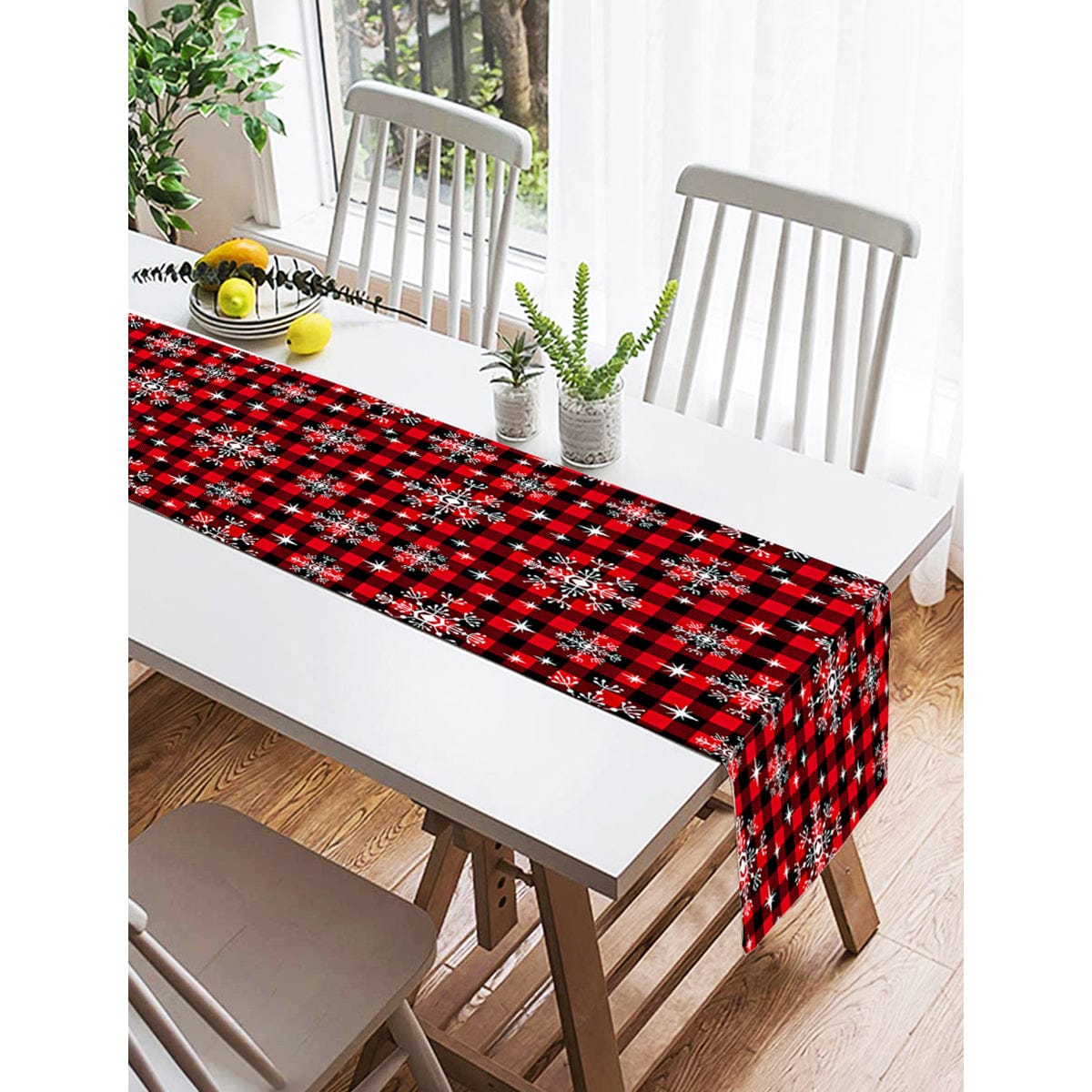 Siyah Beyaz Ekose Desenli Altın Yaldızlı Dekoratif Süet Runner