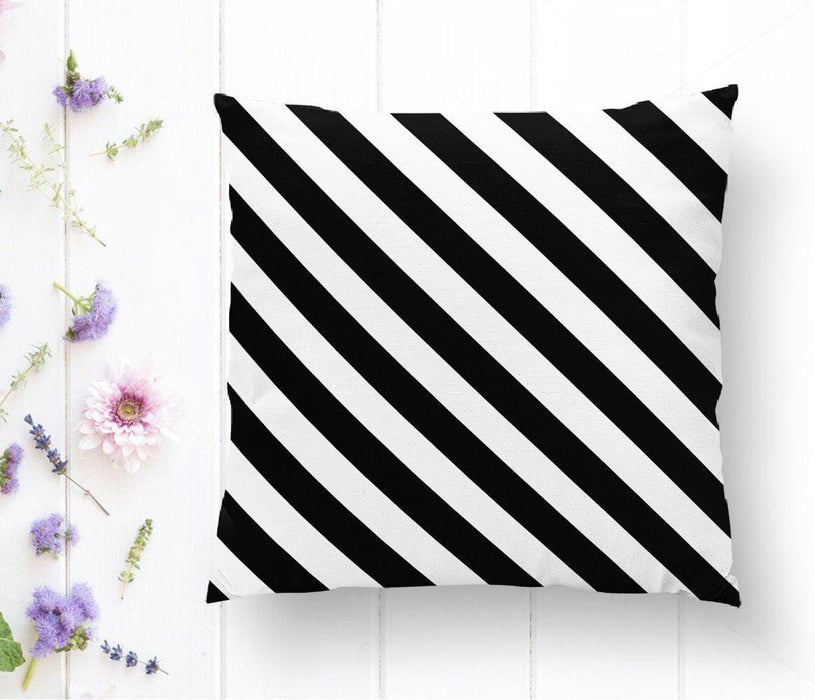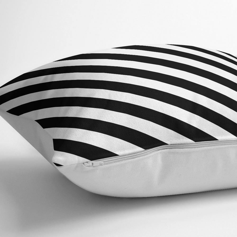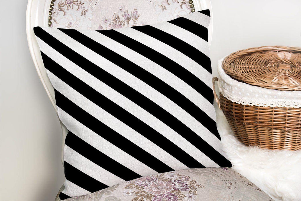 Siyah Beyaz Şeritli Dijital Baskılı Yastık Kırlent Kılıfı 43x43cm