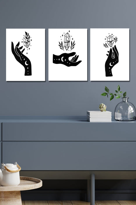 Orijinal World of Walls Siyah Kristal Tutan El 3lü Ahşap Duvar Tablo Seti
