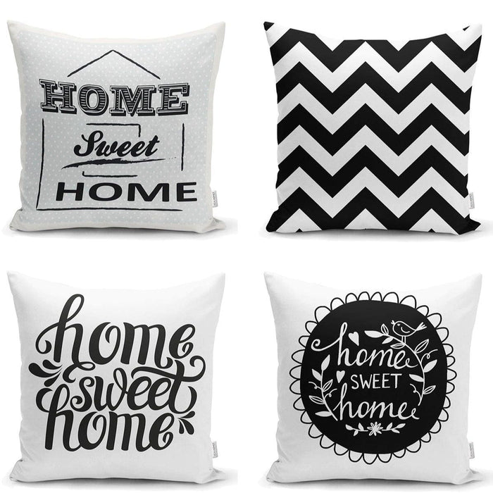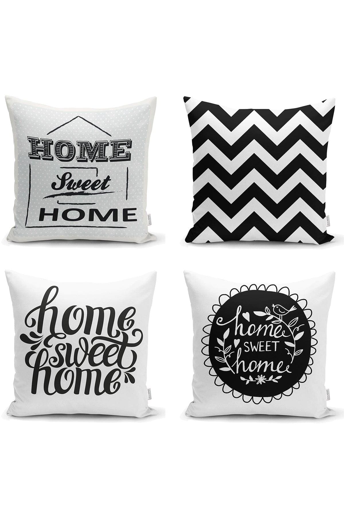 Siyah Zemin Home Sweet 4lü Yastık Kırlent Kılıf Seti