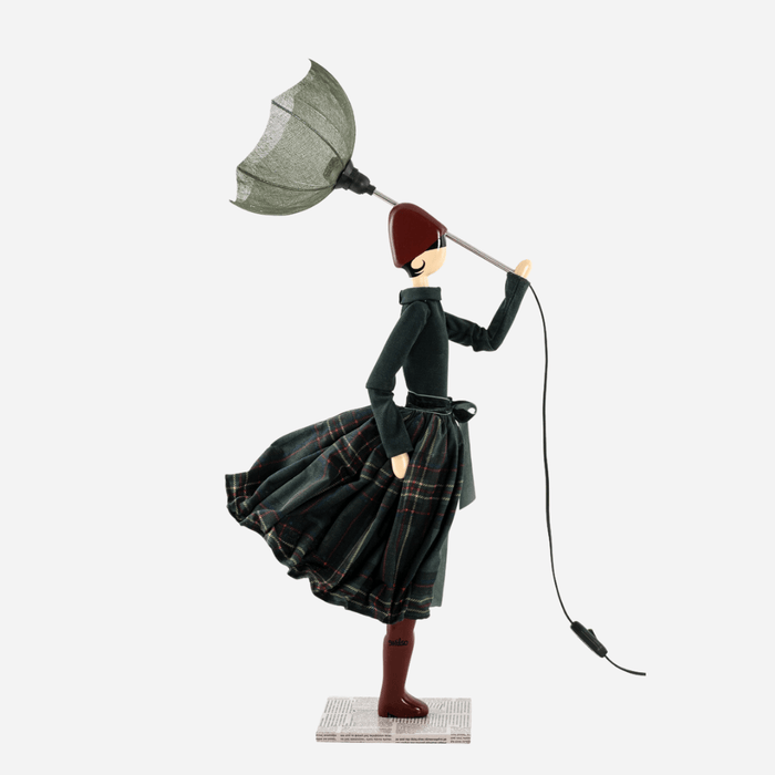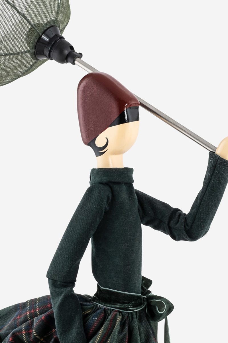 Skitso'ların ters dönmüş şemsiye formundaki aydınlatma başlıkları özel kumaş ve tellerden üretilirken renk seçimi orijinal tasarıma göre belirlenmiştir.