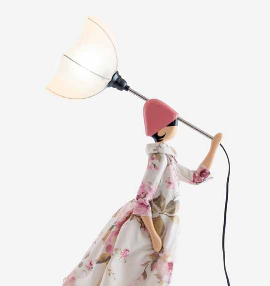 Skitso'ların ters dönmüş şemsiye formundaki aydınlatma başlıkları özel kumaş ve tellerden üretilirken renk seçimi orijinal tasarıma göre belirlenmiştir.