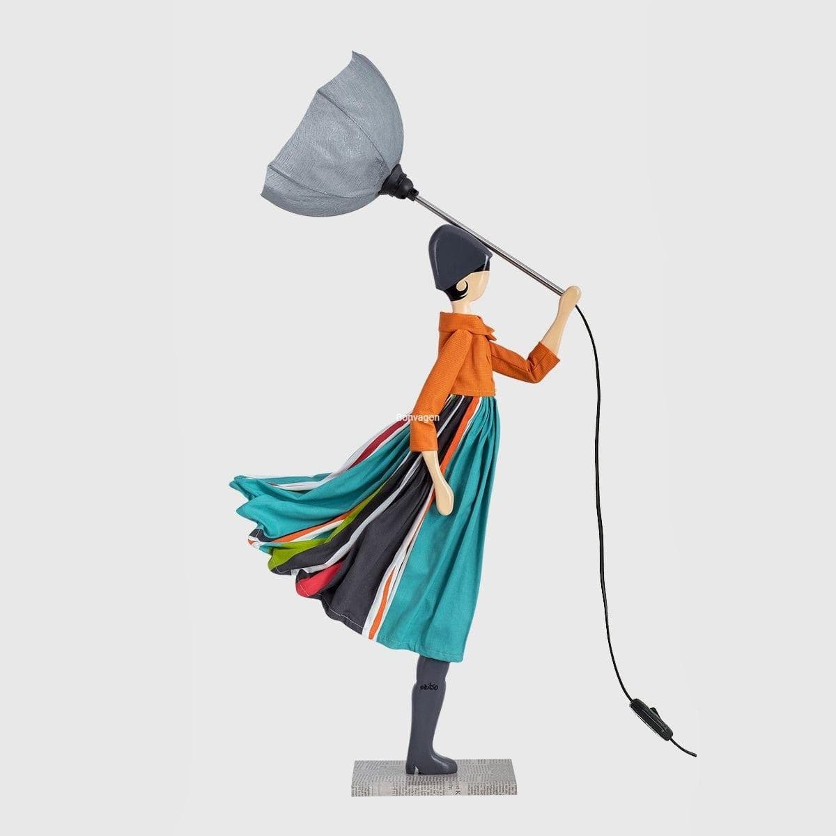 Skitso'ların ters dönmüş şemsiye formundaki aydınlatma başlıkları özel kumaş ve tellerden üretilirken renk seçimi orijinal tasarıma göre belirlenmiştir.
