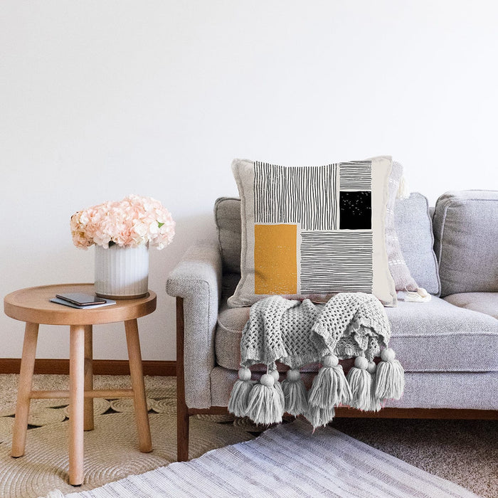 Soyut İlkel Desen Tasarımlı Dijital Baskılı Dekoratif Raşel Kadife Yastık Kırlent Kılıfı