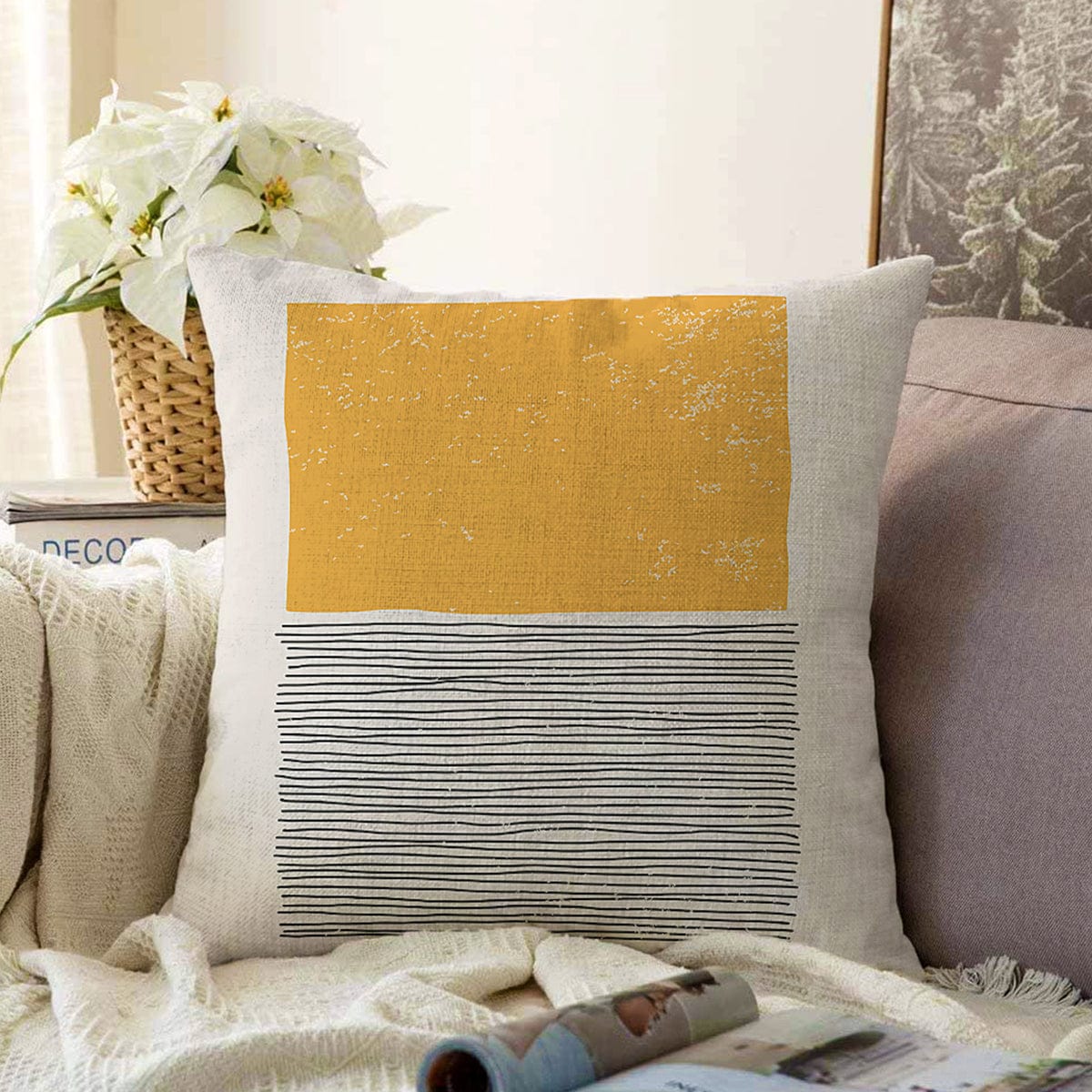Soyut İlkel Desen Tasarımlı Dijital Baskılı Modern Raşel Kadife Yastık Kırlent Kılıfı