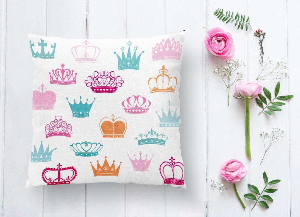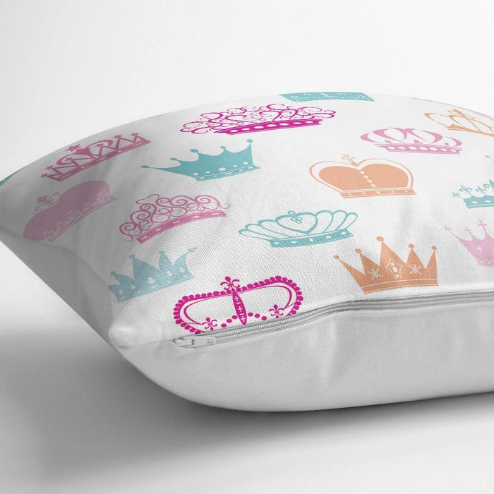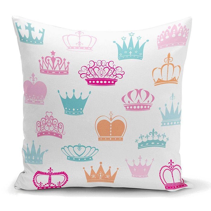 Taç Motifli Renkli Dijital Baskılı Yastık Kırlent Kılıfı 43x43cm