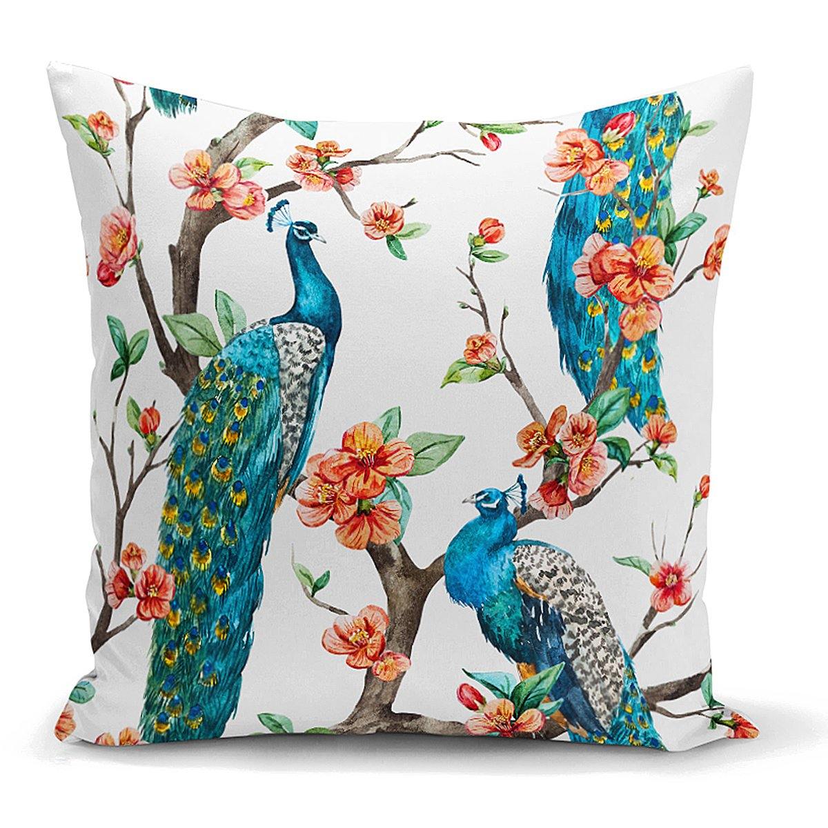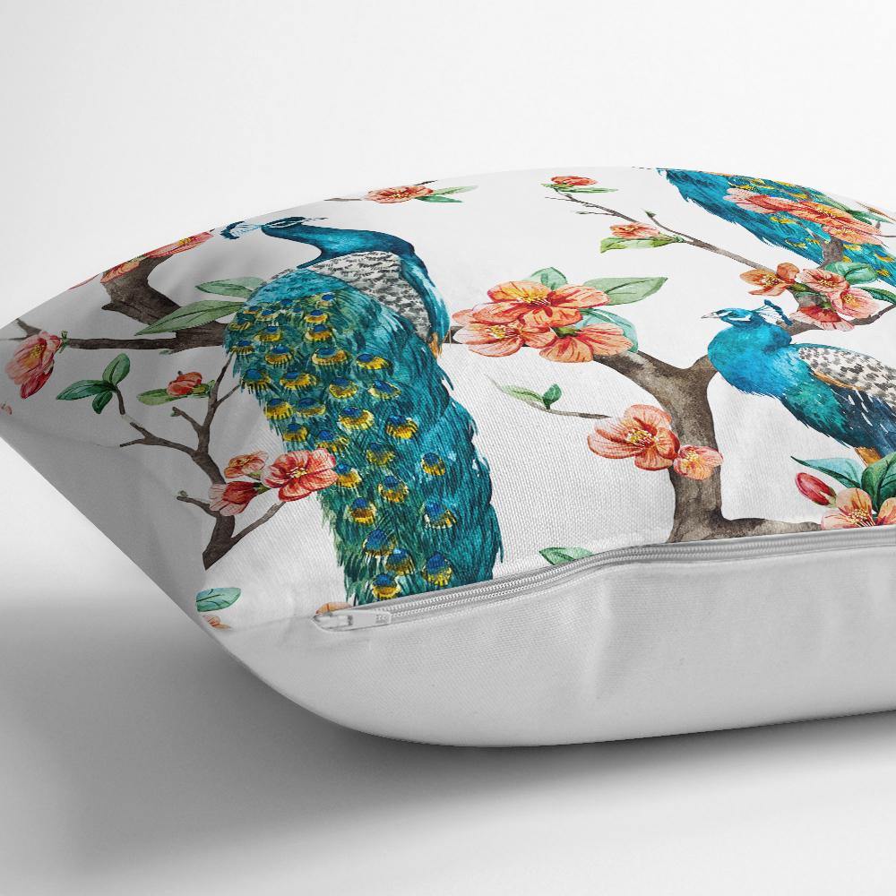 Tavuz Kuşu Baskılı Dijital Yastık Kırlent Kılıfı 43x43cm