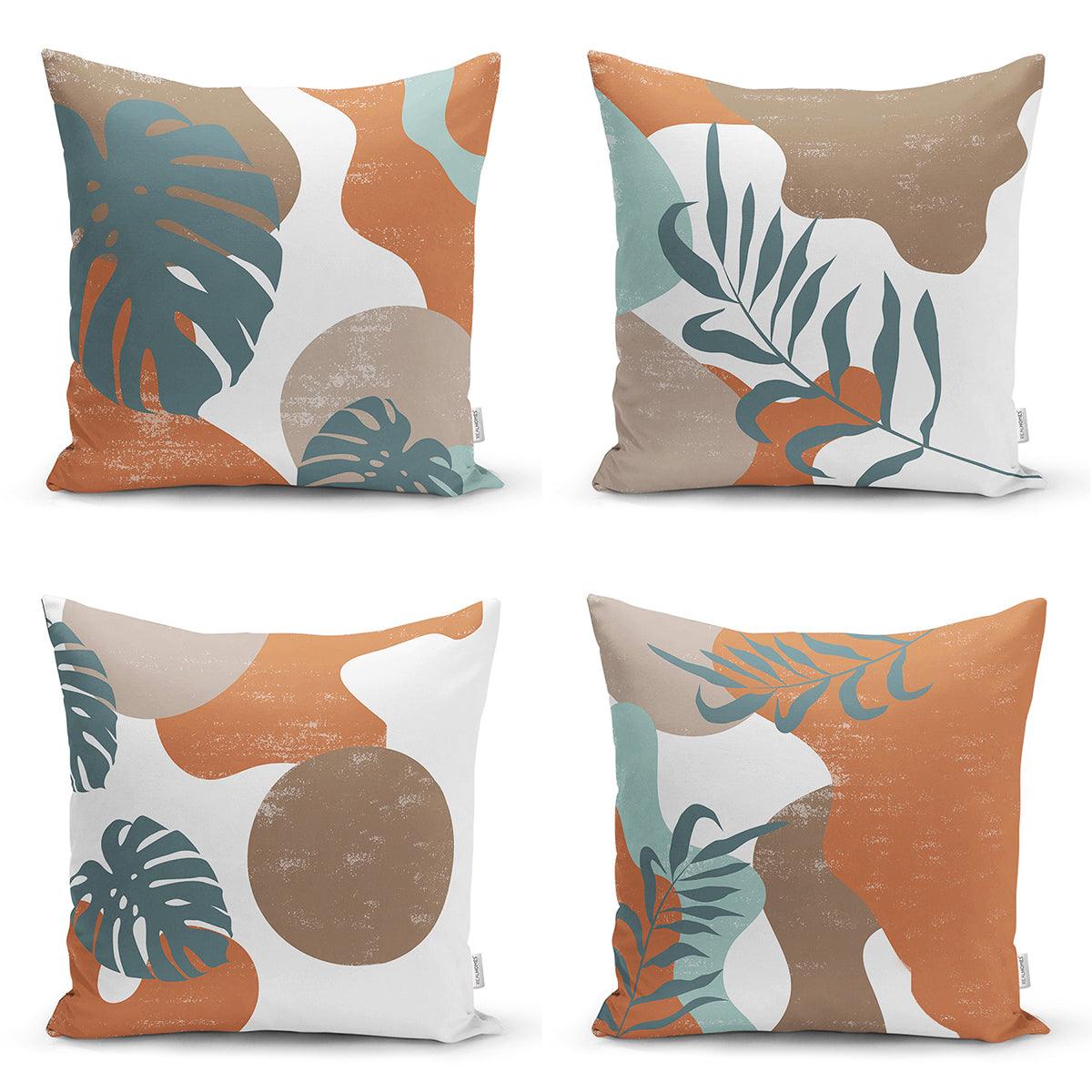 Tropik Yaprak Özel Tasarımlı Dijital Baskılı Modern 4lü Kırlent Kılıfı Seti