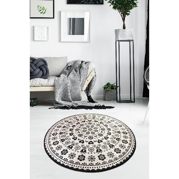 Venice Siyah Dekoratif Dijital Baskılı Çap Halı