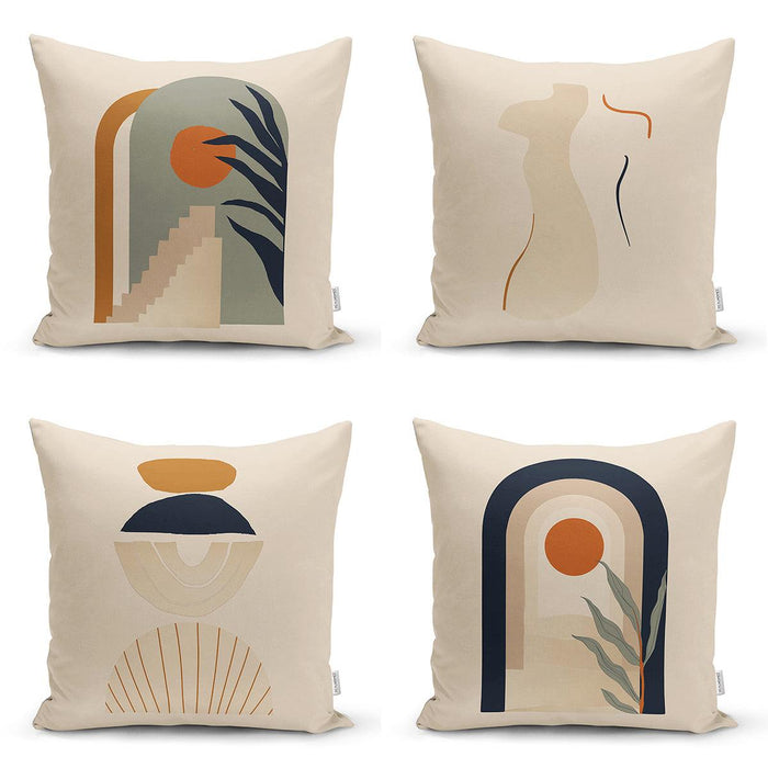 Vizon Zeminli Etnik Çizimli Dijital Baskılı Modern 4lü Kırlent Kılıfı Seti