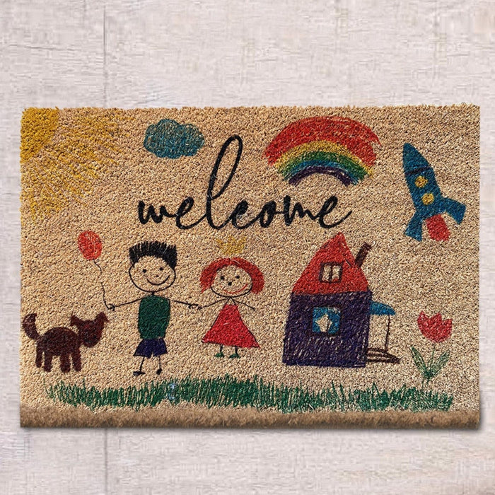 Welcome Family Doğal Koko Hindistan Cevizi Kapı Önü Paspas 60x40cm