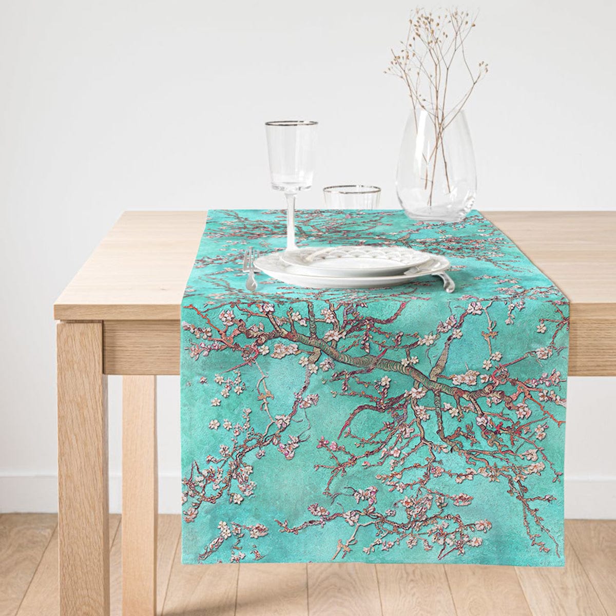 Yağlı Boya Yeşil Ağaç Motifleri Dijital Baskılı Özel Tasarım Süet Runner