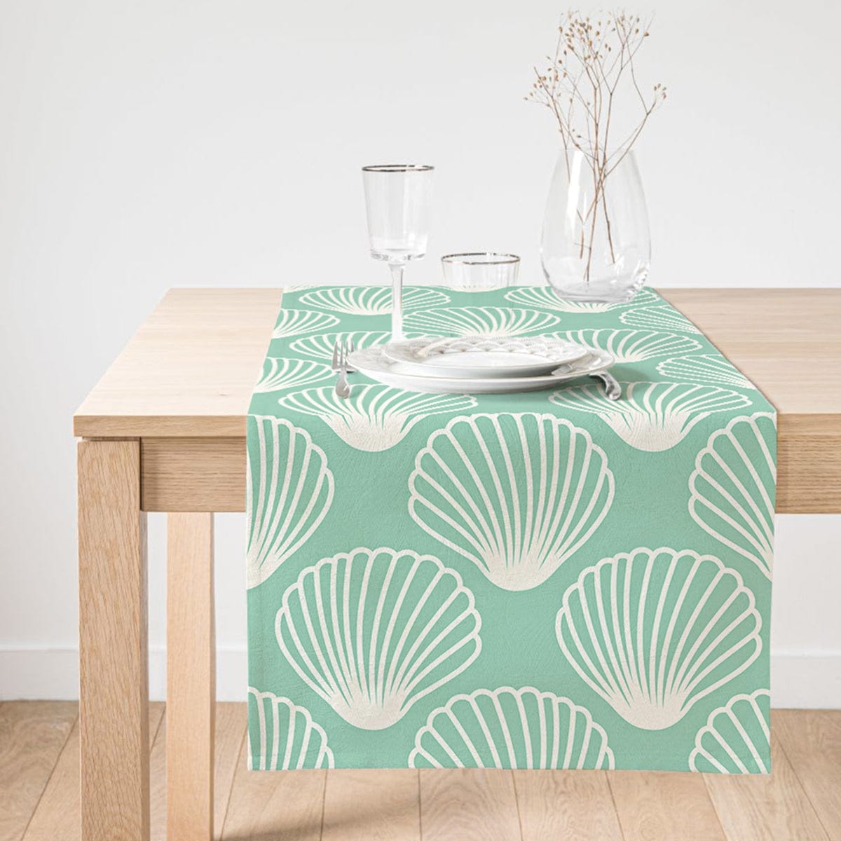 Yeşil Zeminde Deniz Kabuğu Desenli Dijital Baskılı Özel Tasarım Süet Runner