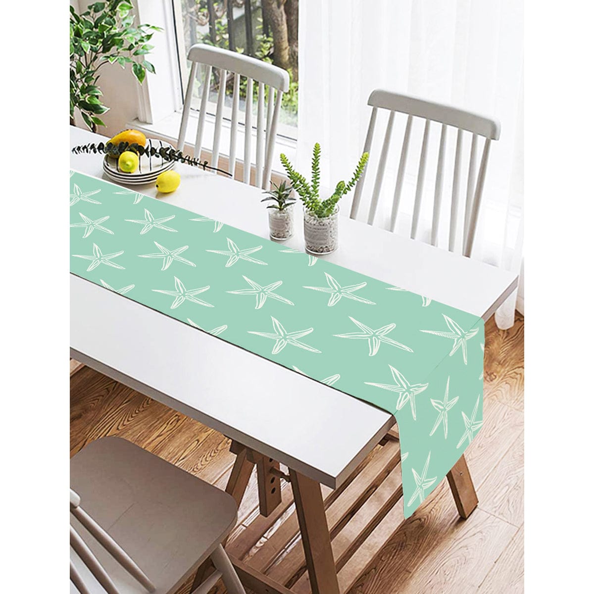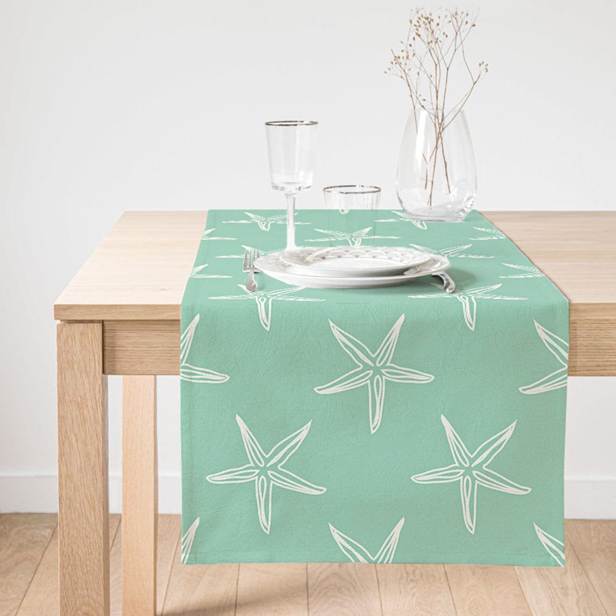 Yeşil Zeminde Krem Deniz Yıldızı Tasarımlı Dijital Baskılı Özel Tasarım Süet Runner