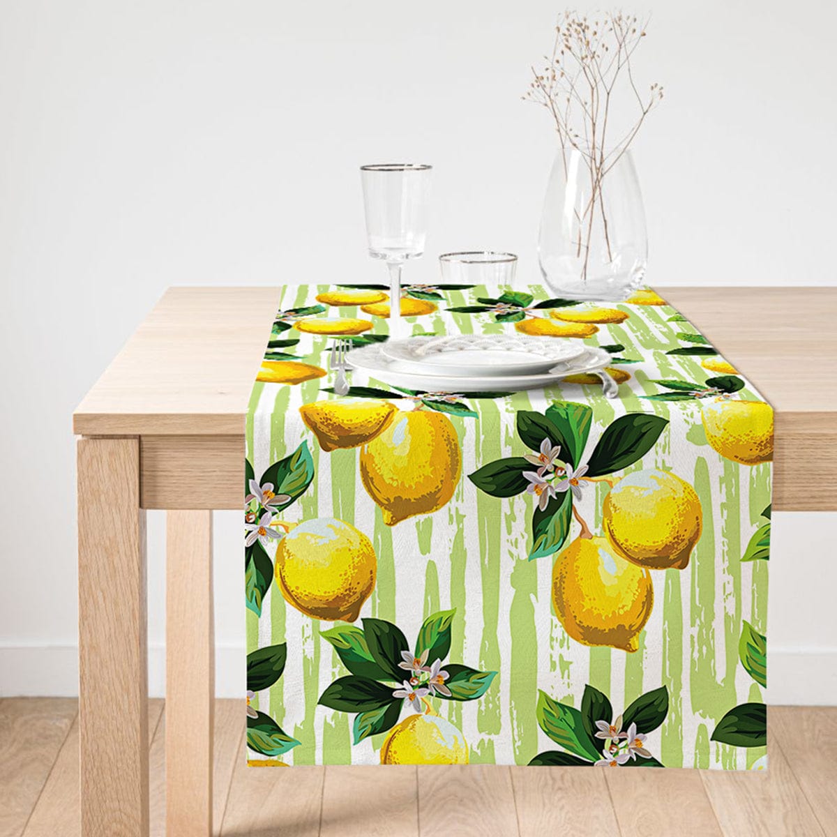 Yeşil Zeminli 3 Boyutlu Limon Desenli Dijital Baskılı Özel Tasarım Süet Runner