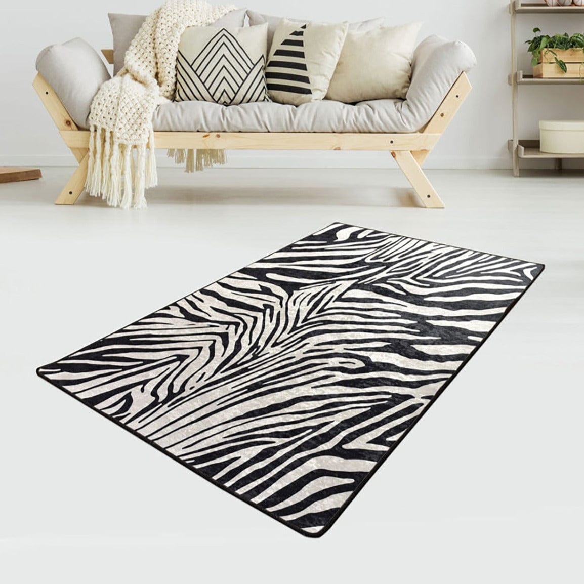 Zebra Dijital Baskılı Halı, Kaymaz Taban, Yıkanabilir